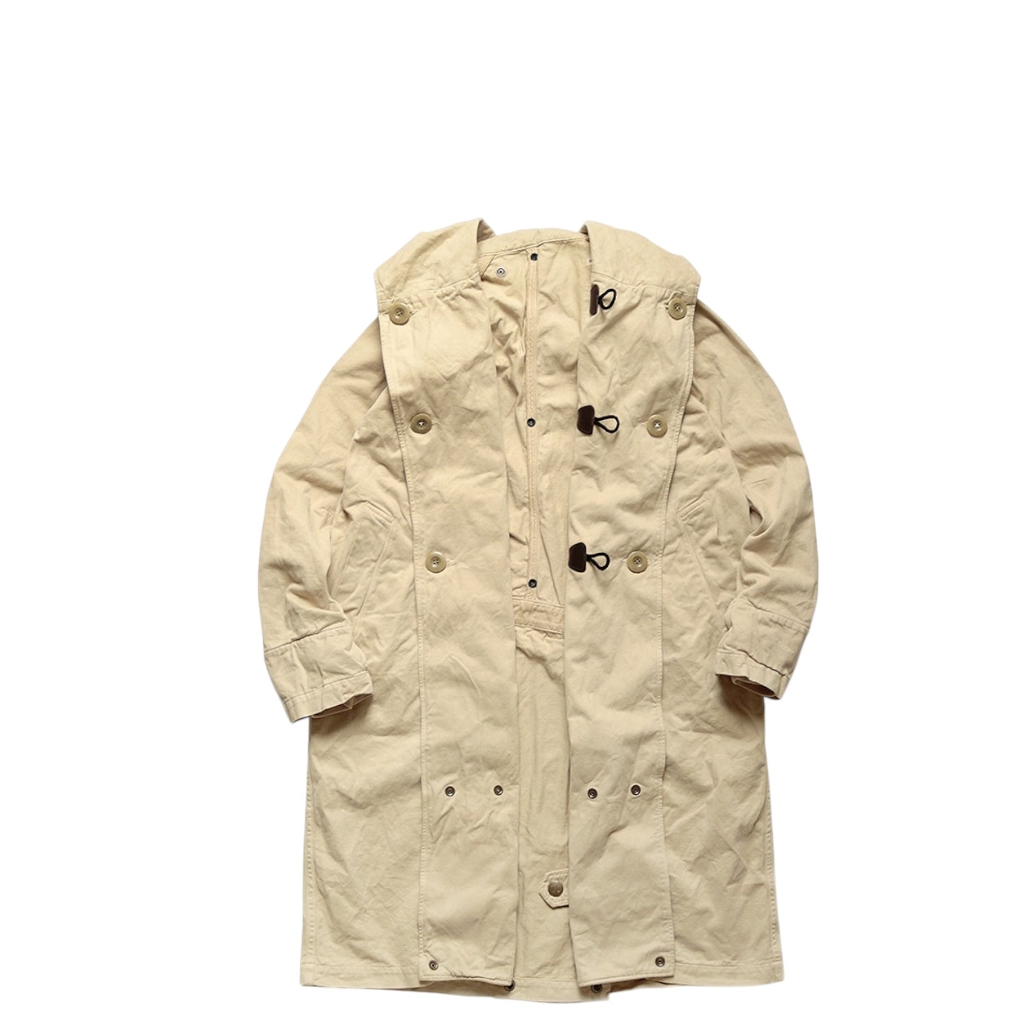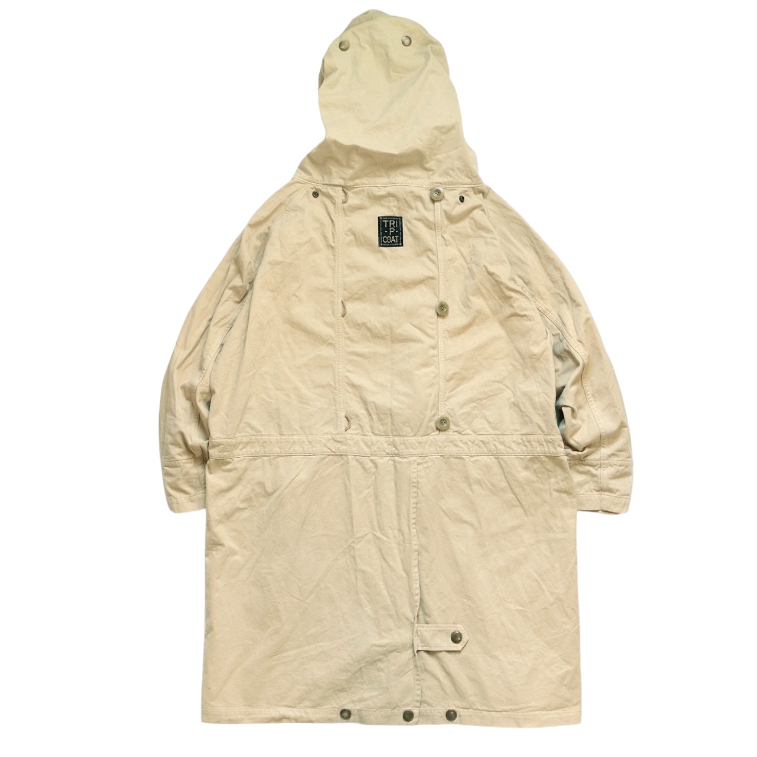 The "TRI-P coat" has a wealth of functionality and ways to enjoy. You can close the front and wear it like a duffle coat, or flip the front and wear it casually. If you fasten the hem with a snap button, it will be bifurcated, making it easier to move and ride a bicycle. When you remove the button on the back. It can also be used as a sleeping bag