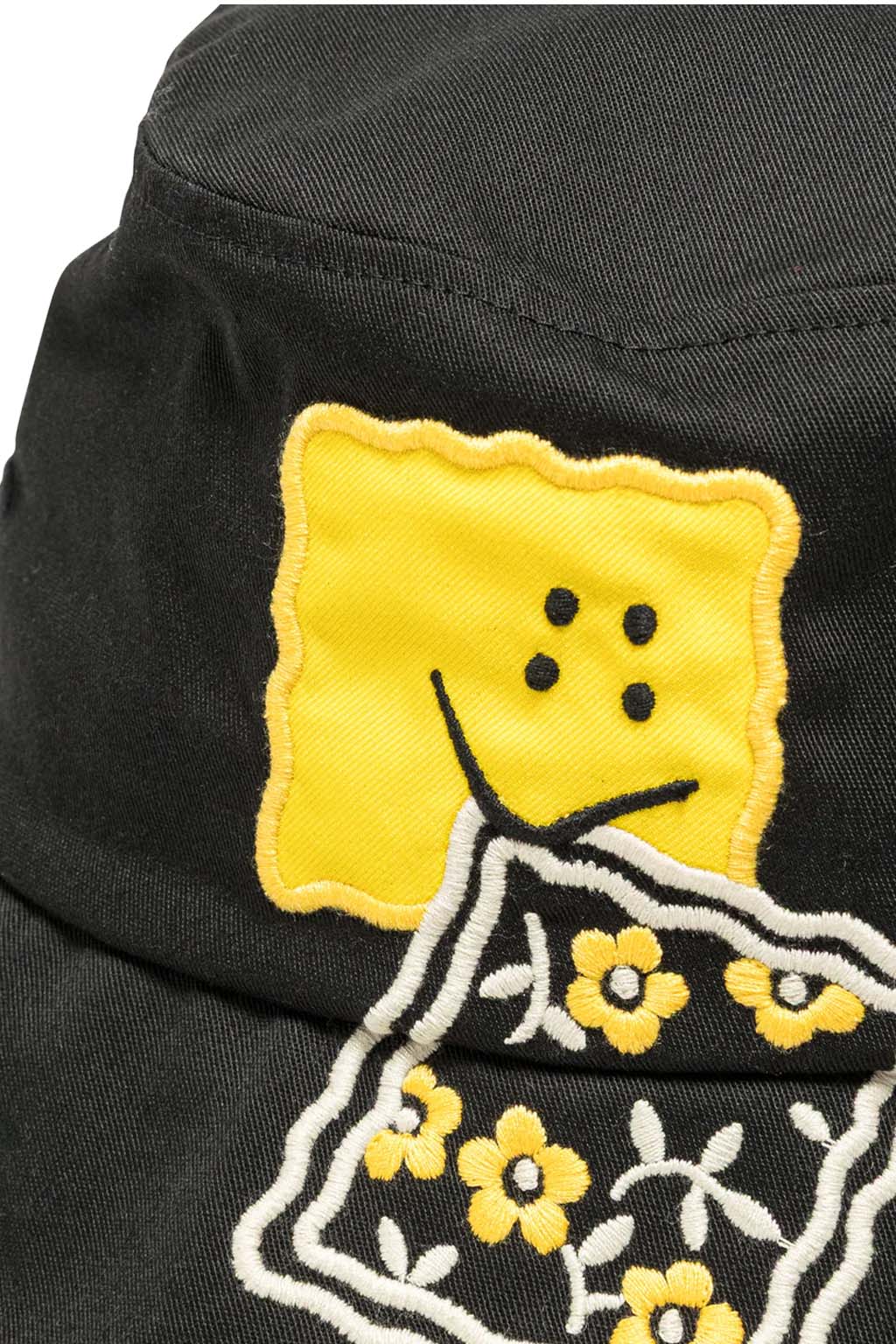 This bucket hat features a bold Rainbowy cookie embroidered on the brim. The lining is made of mesh material.
