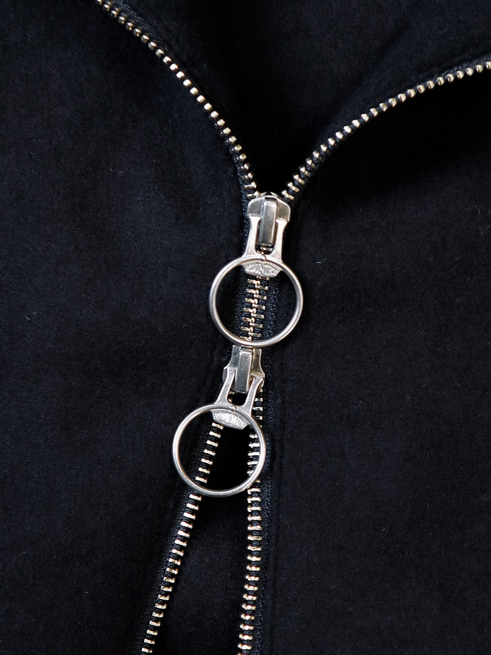 A double-zip blouson made of soft, fluffy flannel wool. The neck, hem, and cuffs are ribbed. It has a short length and a loose silhouette.