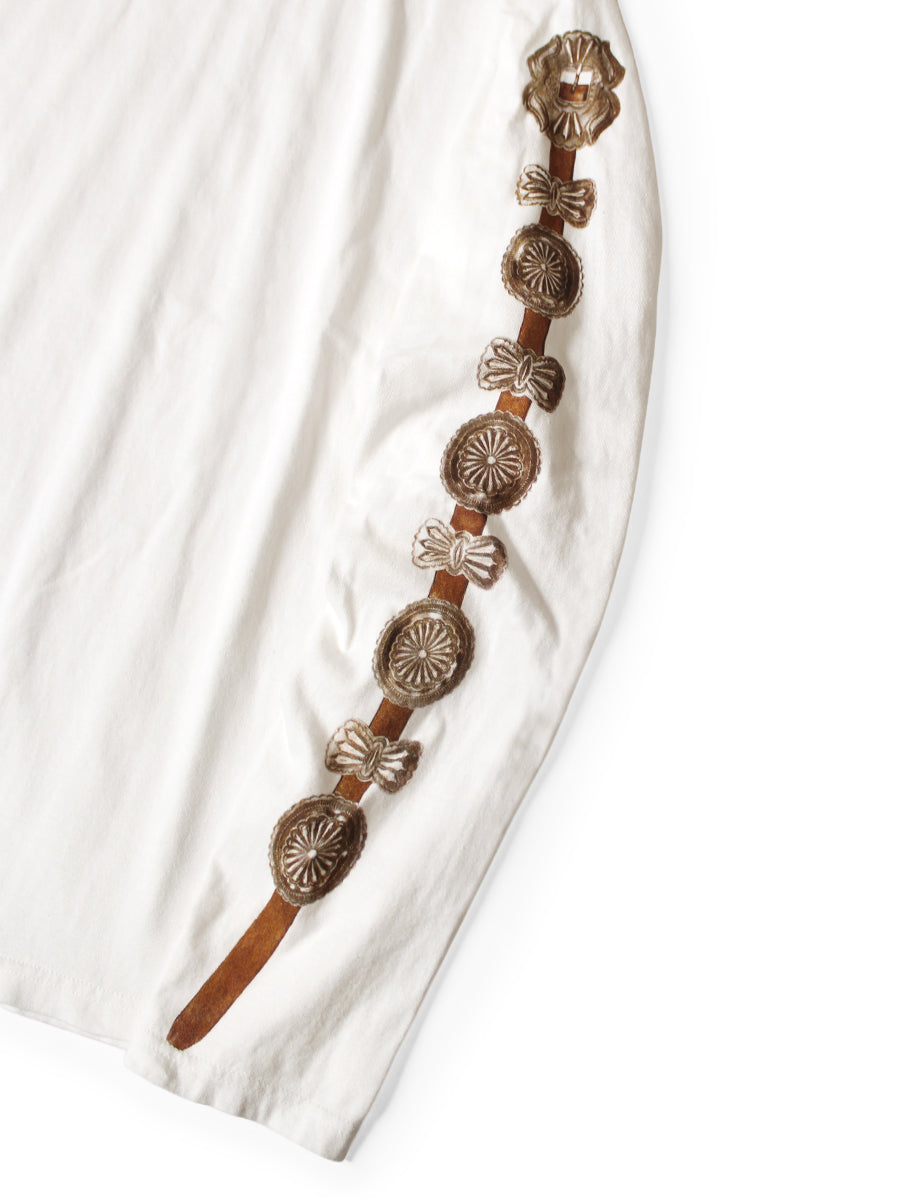 Crew-long T-shirt with concho belt prints on both sleeves.