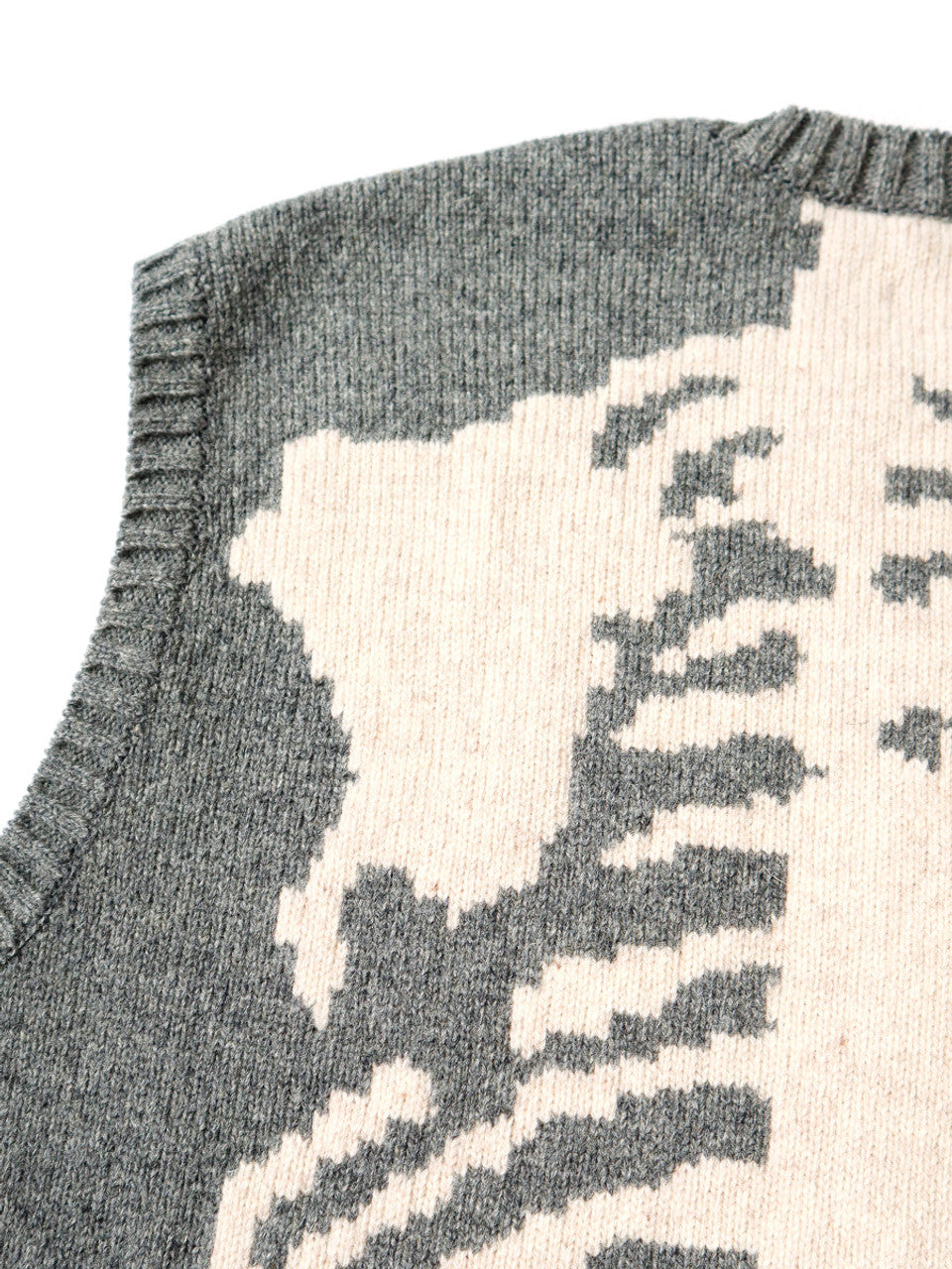 A seasonal knit vest in soft colors featuring an eye-catching bone design.