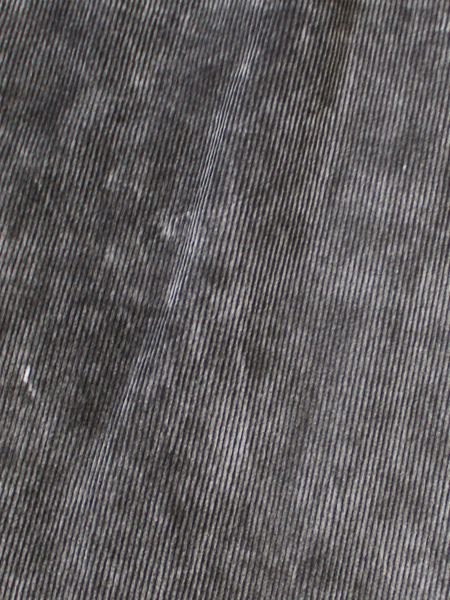 These baggy pants have a voluminous, wide silhouette. They are made from 14-wale corduroy fabric with an impressive uneven dyeing. They feature a small coin pocket with a decorative edge on the front, and a buttoned pocket on the back in addition to the regular hip pockets.