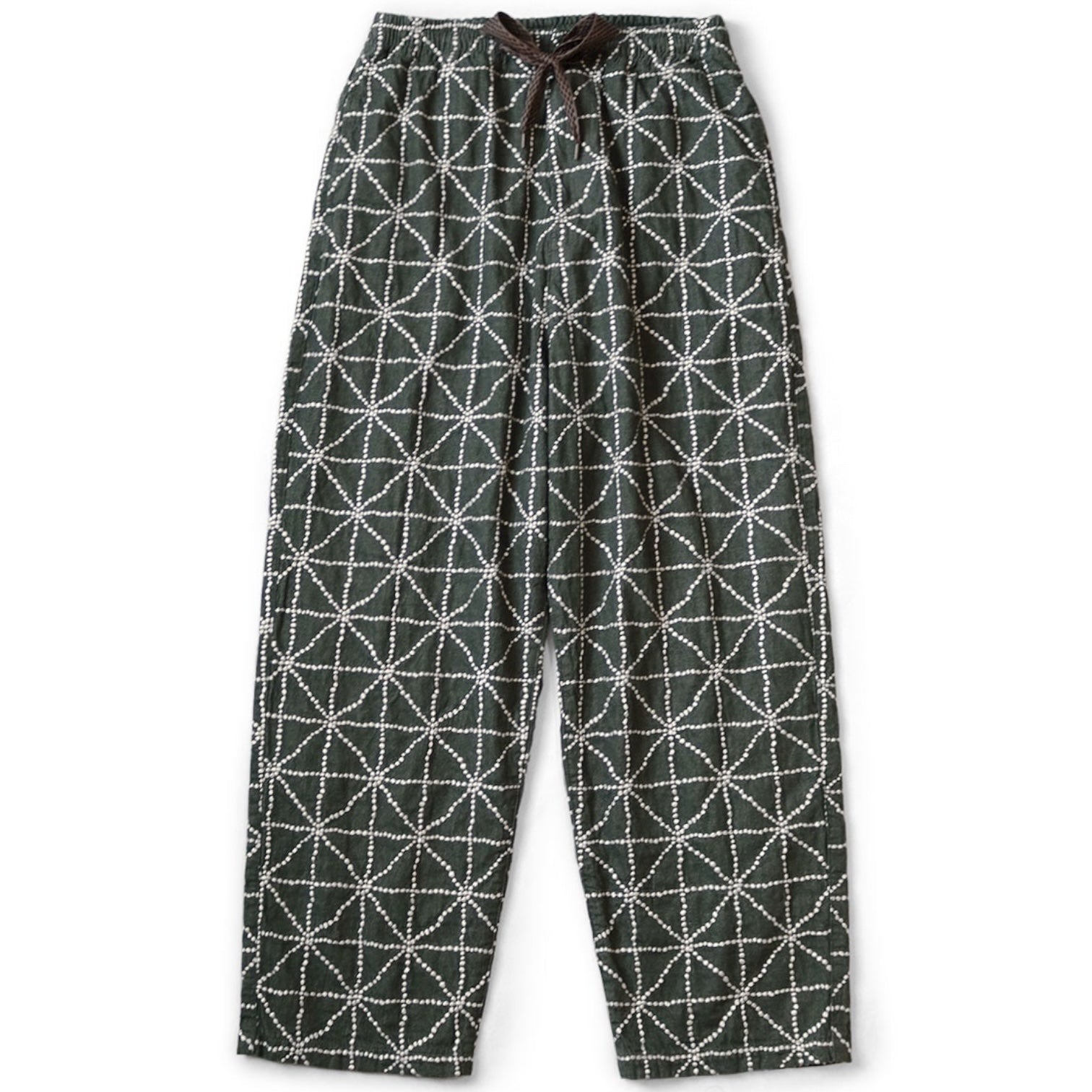 These easy pants feature the sashiko design seen on judo uniforms. They are made from 8oz colored denim and feature an elastic waistband and drawstring for easy wear.