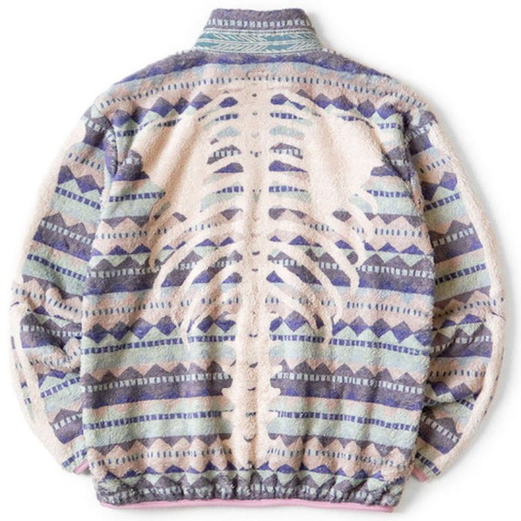 Kapital Ashland Stripe & Bone Pattern Fleece Zip Jacket