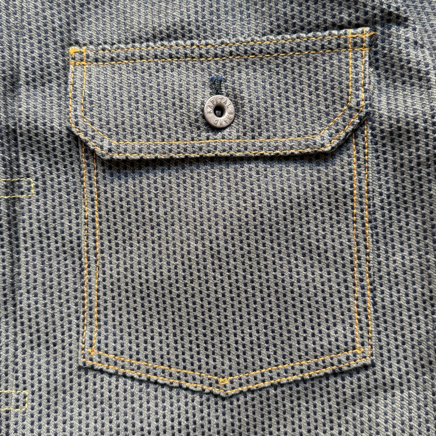 Utilizing Sumi dye, Kapital's No. 7 Century Denim has an ash based light grey tone. A darker indigo sashiko fabric is woven throughout the denim, giving it a contrasting look. Living up to its name, Century Denim is extremely durable and is built to last a lifetime.