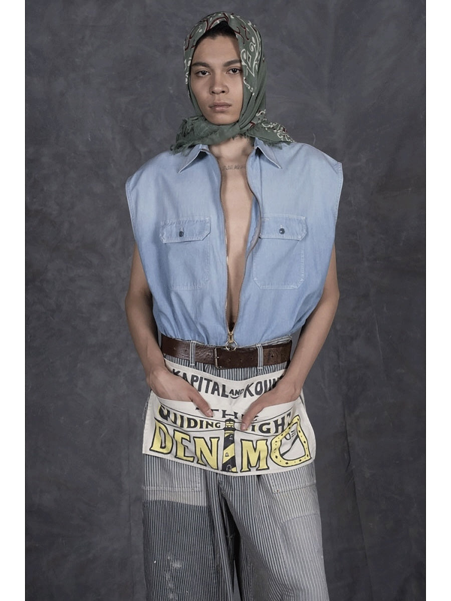Kapital Chambray Sleeveless Zipper Work Shirt