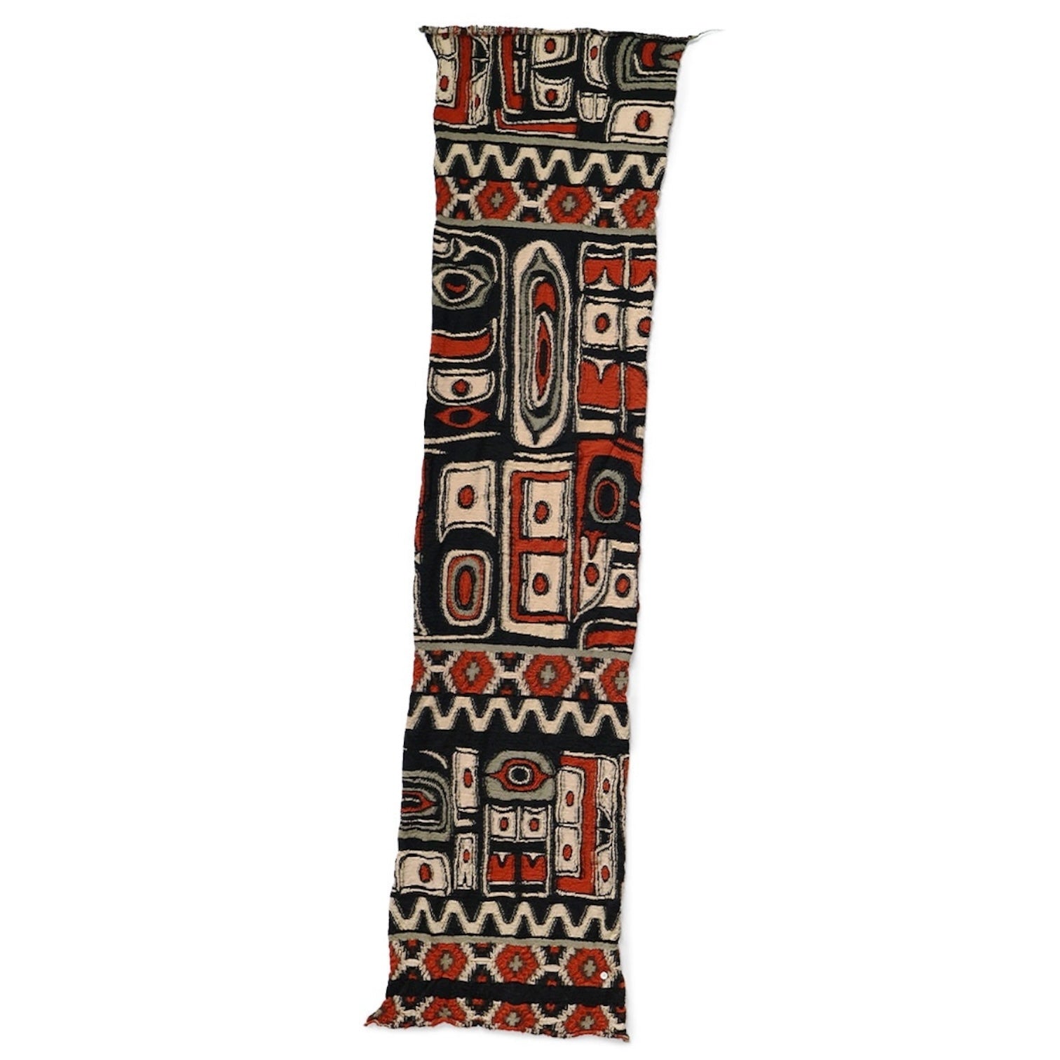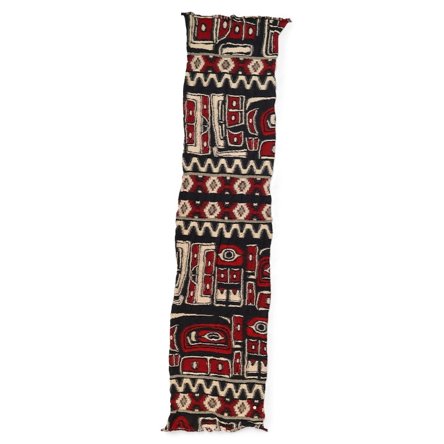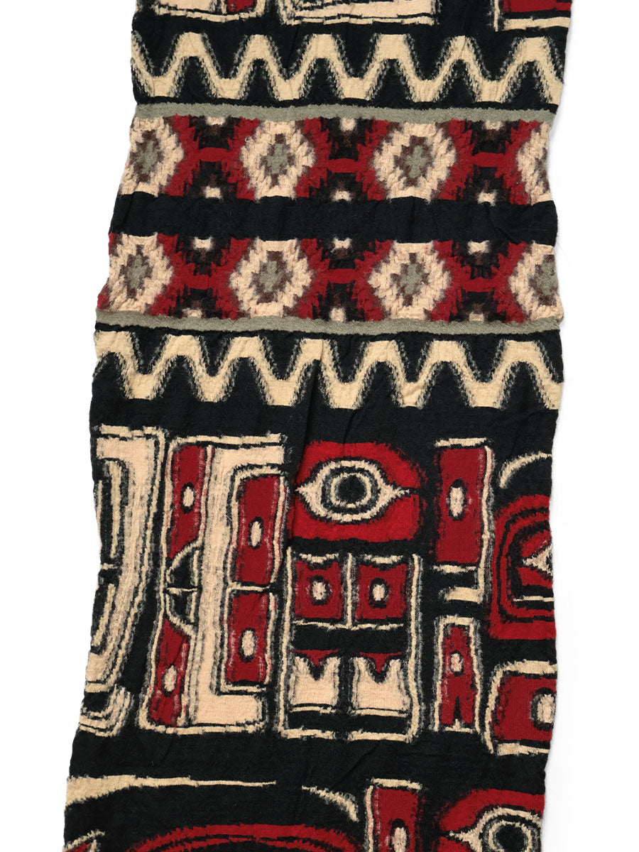 The HAPPY scarf is compact and easy to use. It has a fluffy, felted texture that feels comfortable against the skin. It features a native Alaskan pattern.