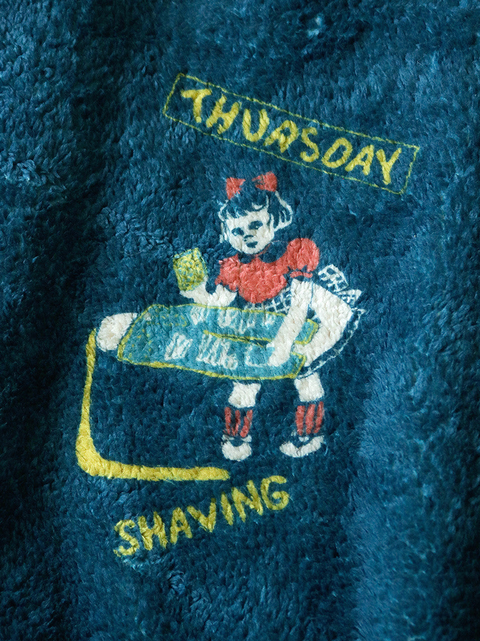 Snap fleece pullover jacket with a drawing of a girl's daily routine working in a clothing factory. It is a piece that can be worn lightly and is soft to the touch.